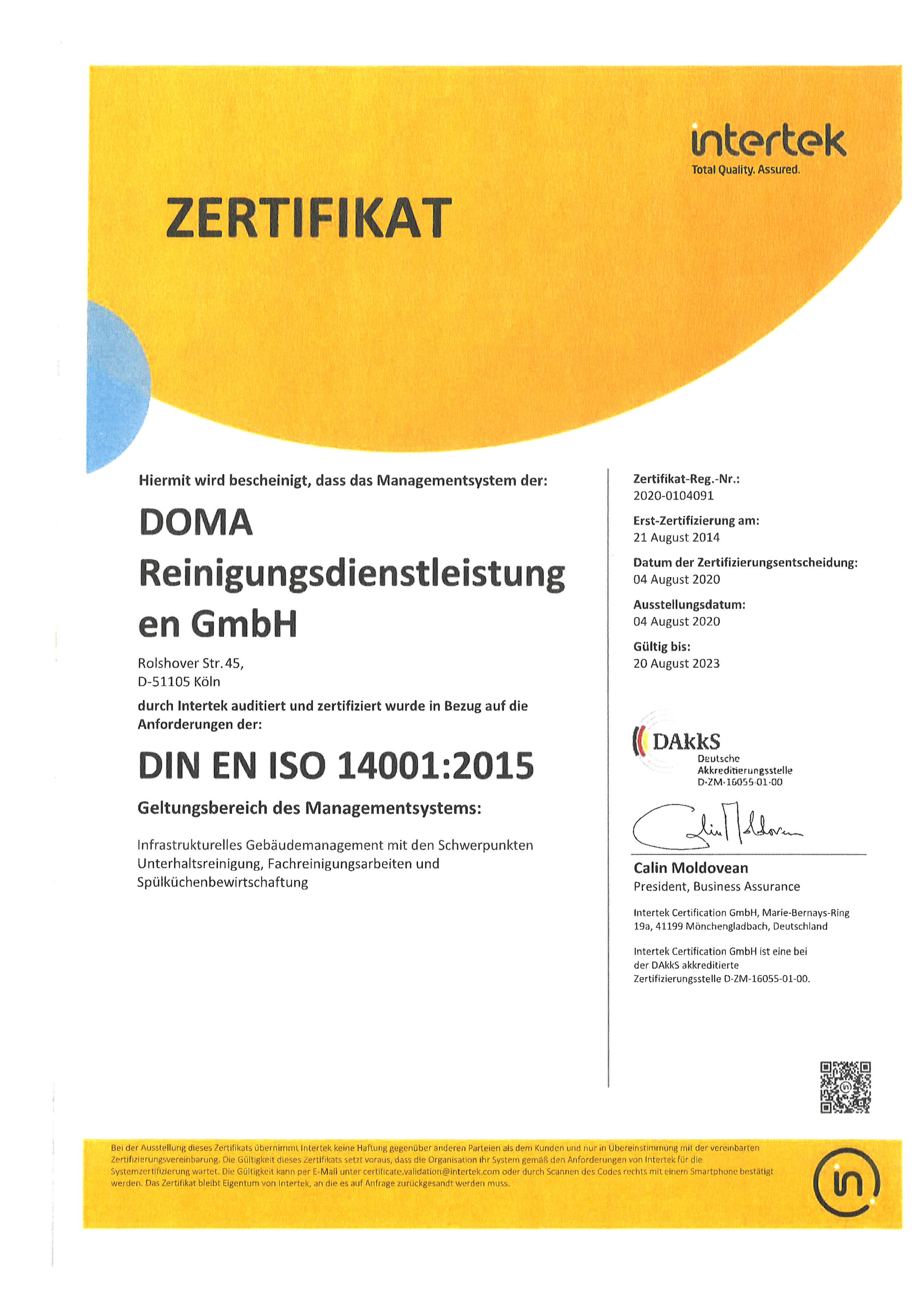 Mit der Zertifizierung nach DIN EN ISO 9001 und nach DIN EN ISO 14001 ist DOMA