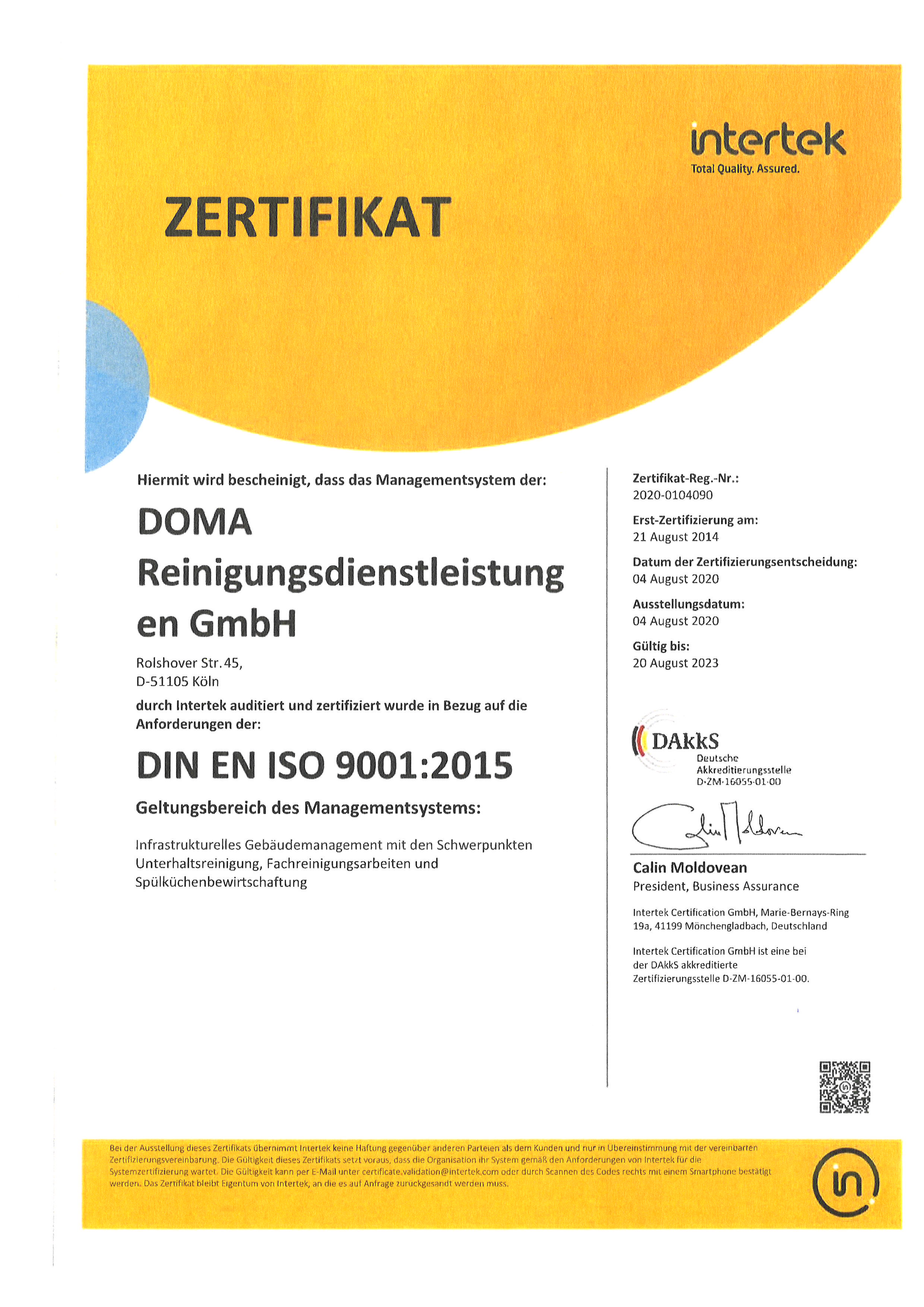 Mit einem breit aufgestellten Dienstleistungsspektrum und mehr als 500 qualifizierten Mitarbeitern bietet Ihnen DOMA als zertifiziertes Gebäudereinigungsfachunternehmen ein umfangreiches Spezialwissen, das wir ganz im Sinne der Werterhaltung Ihrer Immobilie einsetzen.